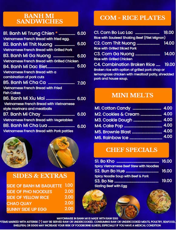 Each dish is crafted with high-quality ingredients and packed with bold flavors. The pho, simmered to perfection, is a crowd favorite, offering a deep, savory taste that warms you right up. Meanwhile, the banh mi sandwiches are a crispy, savory treat, stuffed with a perfect balance of meats, veggies, and sauces. Whether you stop by for a quick lunch or a leisurely dinner, the Super Banh Mi Pho Menu has all your Vietnamese food cravings covered. It’s a perfect place to enjoy a tasty and hearty meal with friends or family.